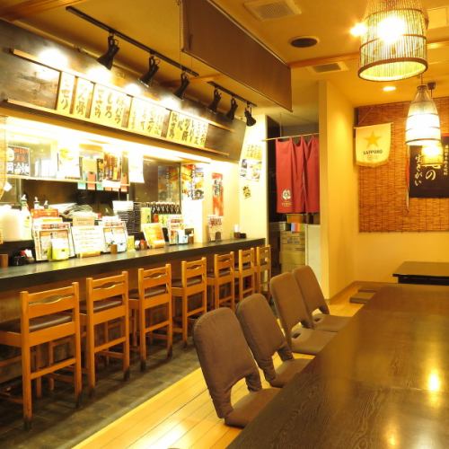 カウンター席で昔ながらの居酒屋雰囲気で金澤手羽先、薩摩炙り焼き、串焼を楽しんでください