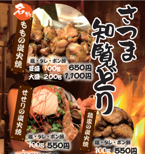 薩摩知覧どり ももの炭火焼(塩・タレ・ポン酢)並100g