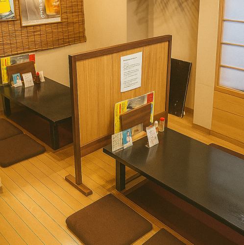 ロールカーテンにて仕切が出来るテーブル席です。4から6名大丈夫です